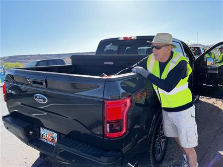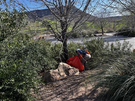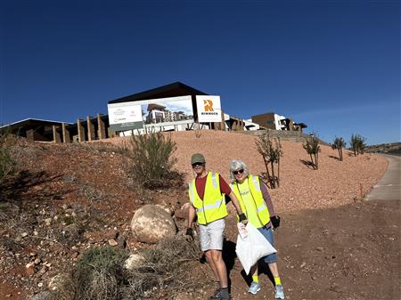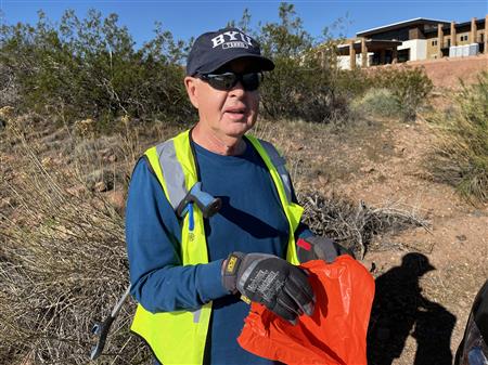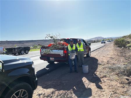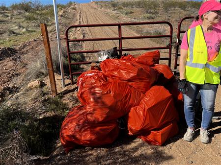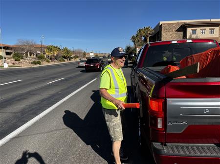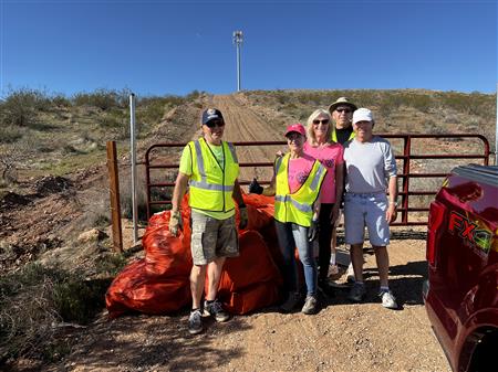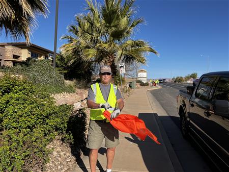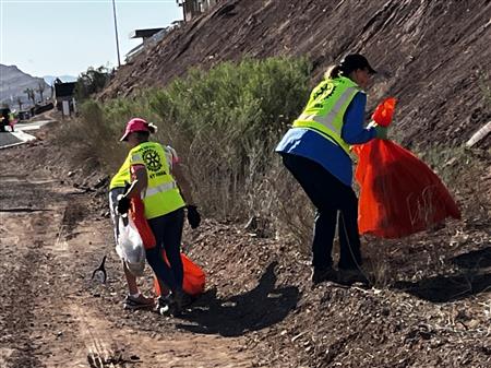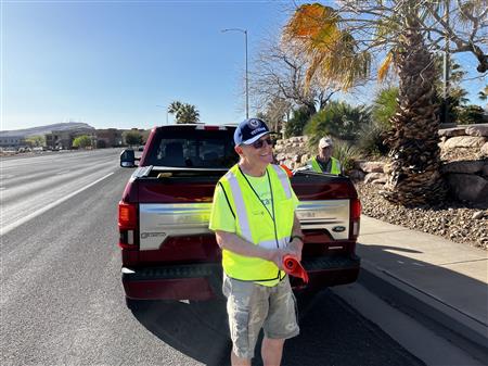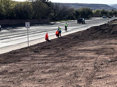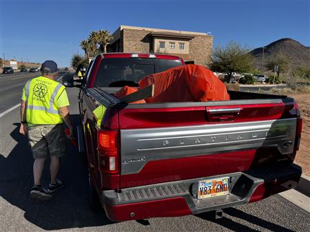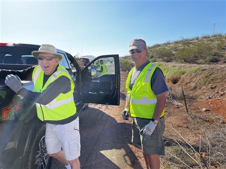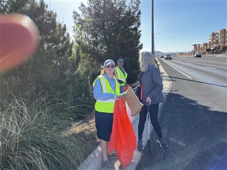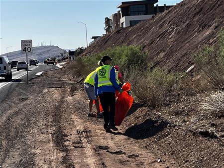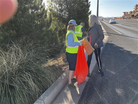 Another great morning picking up trash on Dixie Drive. We had 25 volunteers from Dixie Sunrise Rotary and Sunriver Hiking club to clean up 2 miles of trash between Tonaquint Park and Valley View. We loaded up to pickup trucks with trash. We finished with a wonderful late breakfast at De De’s Restaurant. The most unusual item found was a dead fox.