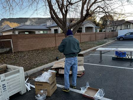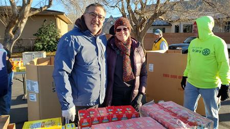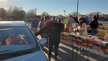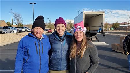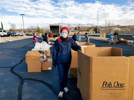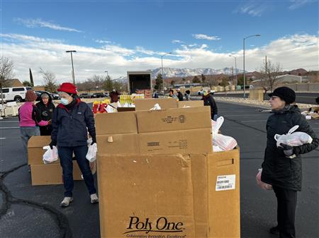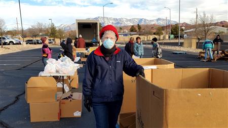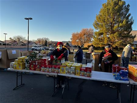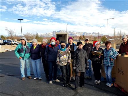 We spread holiday cheer and much needed food to 900 individuals at the December food drive. Our continued thanks to the Utah Food bank, it's tireless staff and River road facility for a warm place to pack over 4570 bags of donated food. They even secured donated frozen turkeys to the delight of so many. Many of the 85 volunteers donned holiday clothing attire to ward off the early morning chill. We offer our ongoing thanks to our volunteers from local churches, Sun River, Dixie Sunrise Rotary, non- profit organizations, and St. George community members. The food need continues to be great but so does the importance of volunteer service.