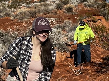 On the second Saturday of the month (weather permitting), Dixie Sunrise Rotary Club will work on the illegal trails in Snow Canyon State Park that pop up along tortoise habitat which endanger their survival. Volunteers will place signs warning those who violate the area to stop designing off road trails where the turtles live. By placing large rocks and boulders on the trails which make riding them impossible, the volunteers will hopefully deter those from using the area for illegal recreation.