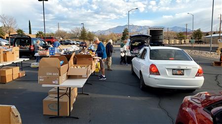 We spread holiday cheer and much needed food to 900 individuals at the December food drive. Our continued thanks to the Utah Food bank, it's tireless staff and River road facility for a warm place to pack over 4570 bags of donated food. They even secured donated frozen turkeys to the delight of so many. Many of the 85 volunteers donned holiday clothing attire to ward off the early morning chill. We offer our ongoing thanks to our volunteers from local churches, Sun River, Dixie Sunrise Rotary, non- profit organizations, and St. George community members. The food need continues to be great but so does the importance of volunteer service.