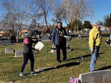 In support of the Wreaths Across American project we placed flag markers on all the veterans graves at the Ivins cemetery. Wreaths Across America will place wreaths at all the graves marked on December 18.